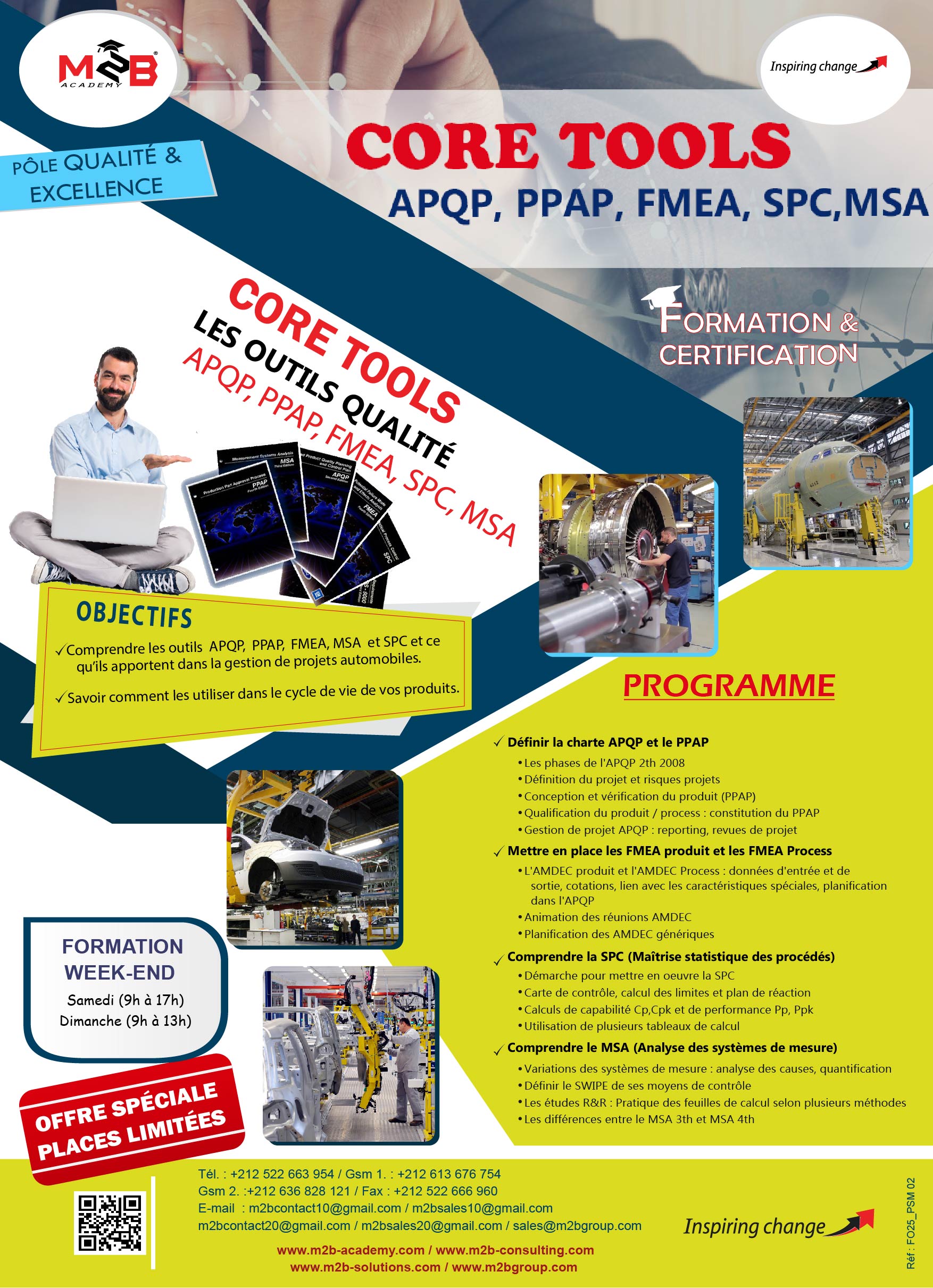 Notre offre de formations est vaste et diversifiée, avec une expérience dans tous les domaines nécessaires à la croissance de la PME (plus de 150 thèmes de formation): Qualité, Sécurité, Productivité, Leadership, Management(marketing, vente, communication, finance…), techniques professionnelles, prévention et environnement.